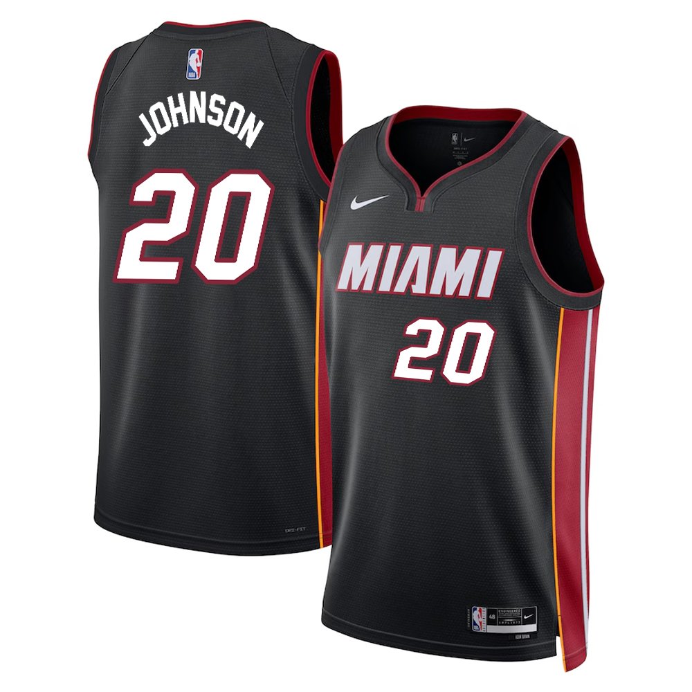 Regata NBA Miami Heat Ícon Edition Swingman Keshad Johnson 20 - PretaRegata NBA Miami Heat Ícon Edition Swingman Keshad Johnson 20 – Preta